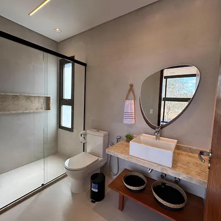 De gesitueerde in Gravatá Casa Em Gravata - Condominio Raiz Da Serra 4 ligt op 10 minuten met de auto weg van Museu Memorial de Gravatá en biedt een terras met uitzicht op het zwembad.