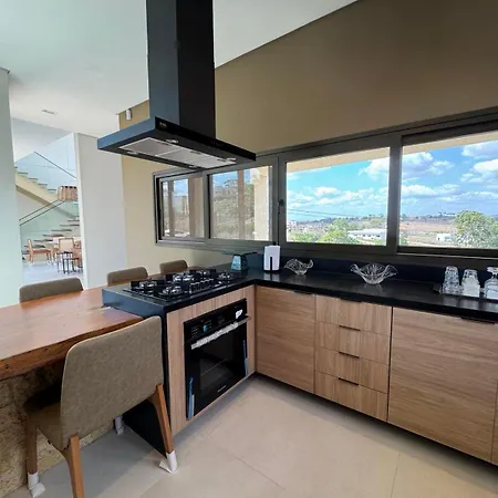 Deze 4-slaapkamer Casa Em Gravata - Condominio Raiz Da Serra 4 beschikt over een koelkast, een oven en keukengerei in een ingerichte keuken.